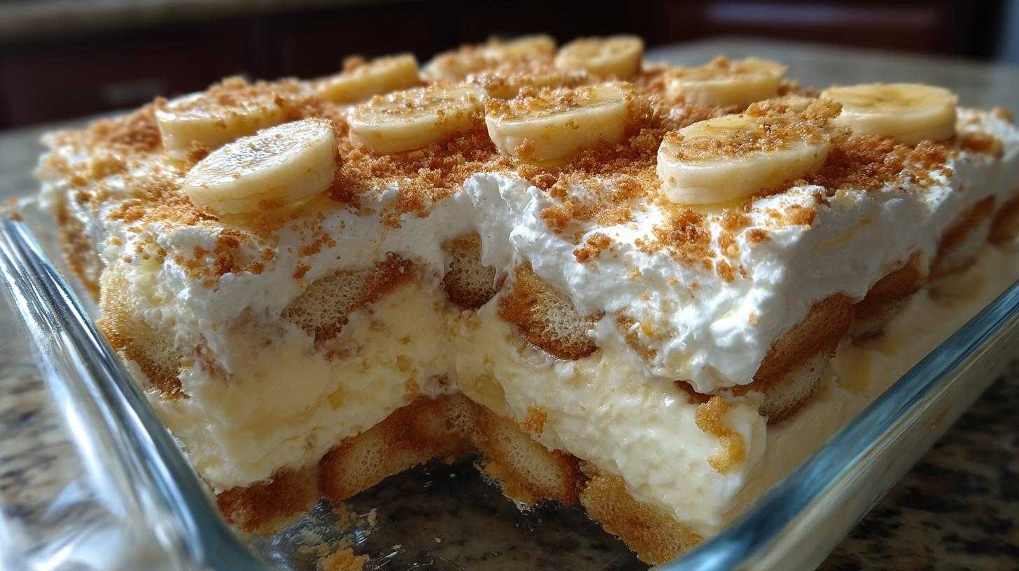 A classic Southern dessert featuring layers of creamy vanilla pudding, fresh banana slices, and crisp Nilla Wafers.